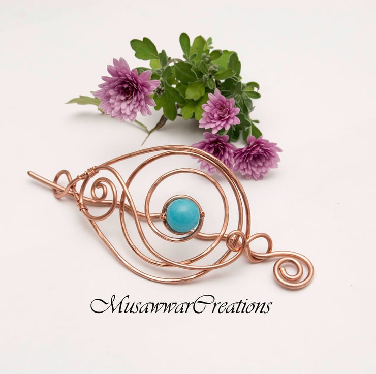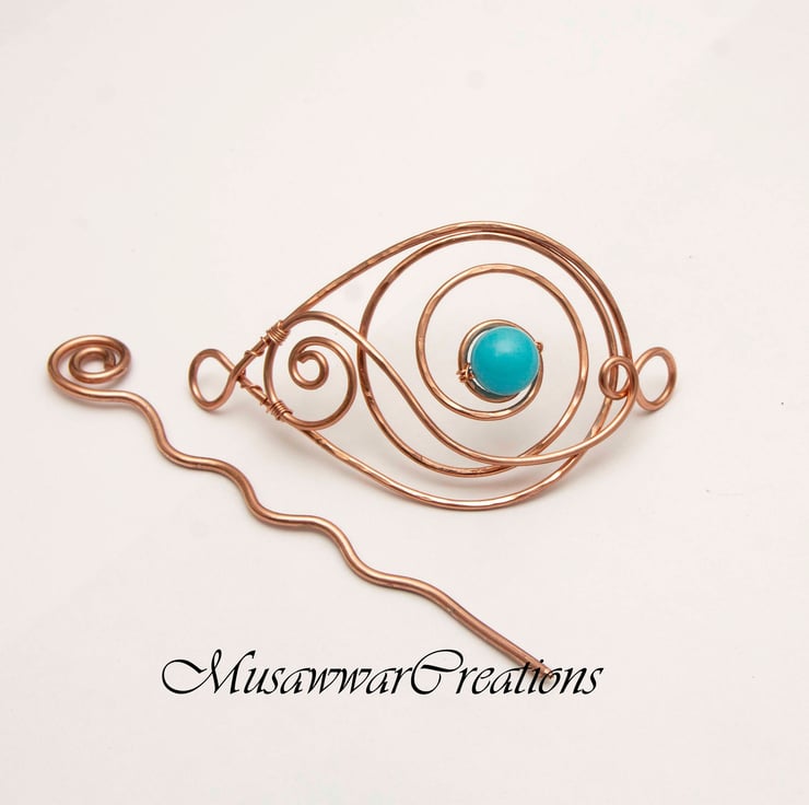 This beautiful piece of hair slide is made of 2mm solid copper wire