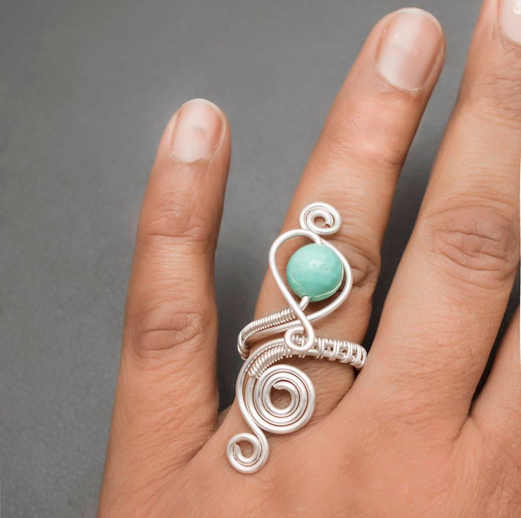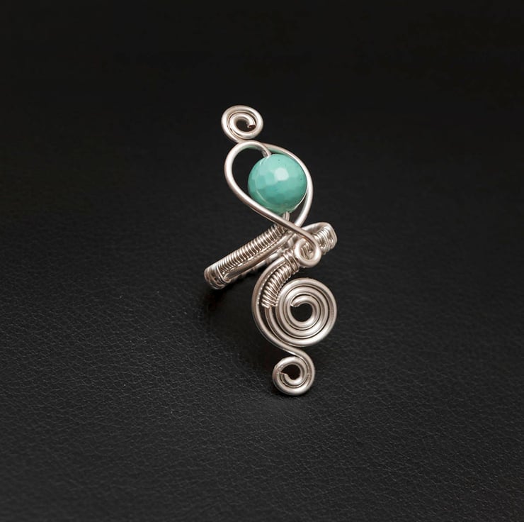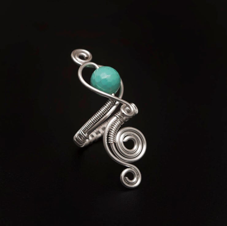 This beautiful ring is crafted from 1.25 mm wire, carefully wrapped around a 10 mm turquoise shell pearl — creating a simple yet elegant design that captures natural beauty.