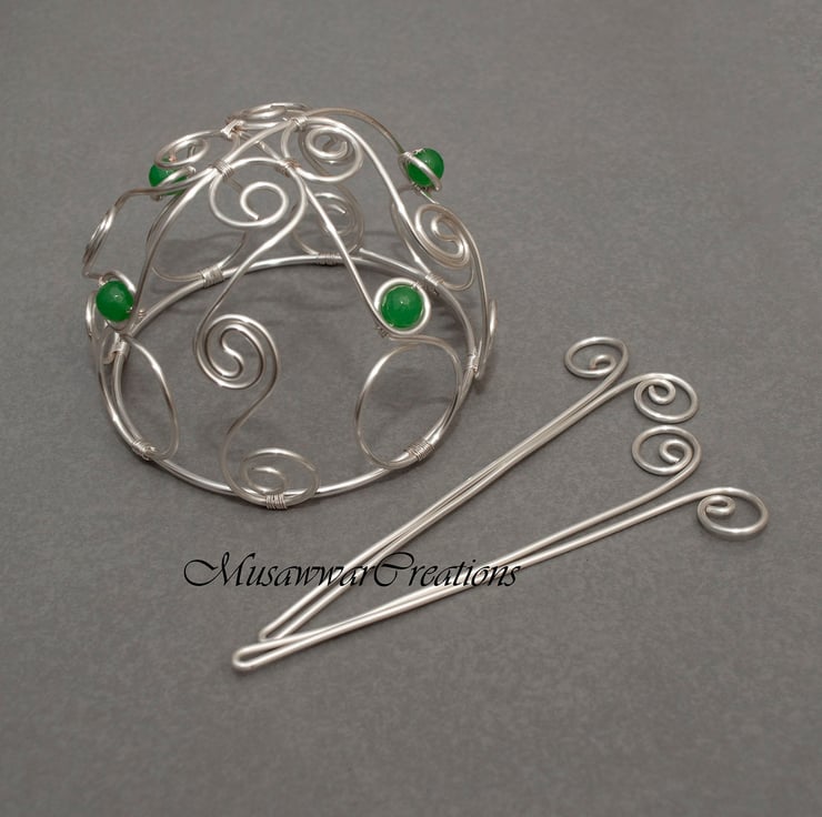 Create unique and beautiful hairstyles for any occasion with this Silver Spiral Hair Bun Cage. Handcrafted from silver-tone metal, it provides both elegance and durability, ensuring your hair stays securely in place all day long.