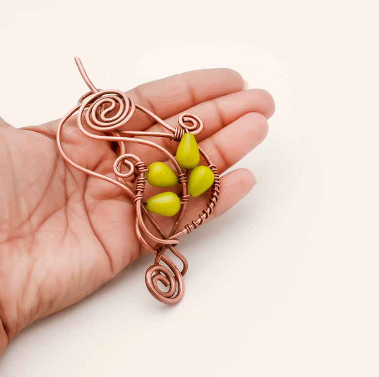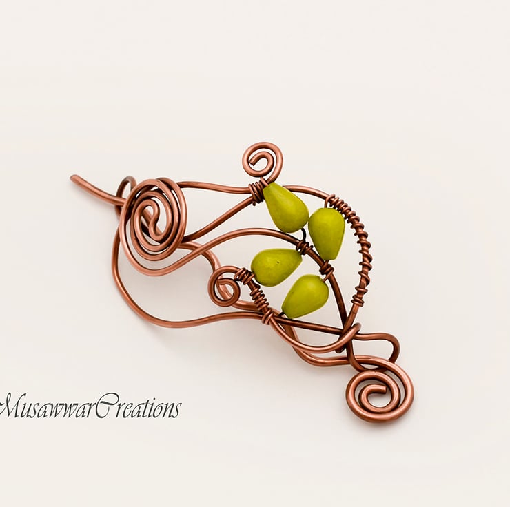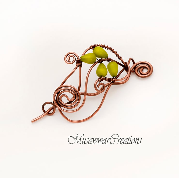Leaf Green Quartz Hair Brooch in Antique Copper – Handmade Nature Inspired Hair