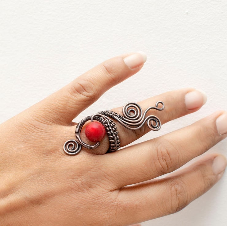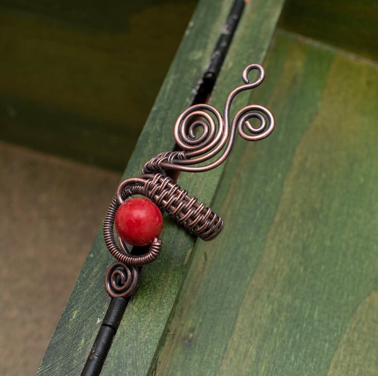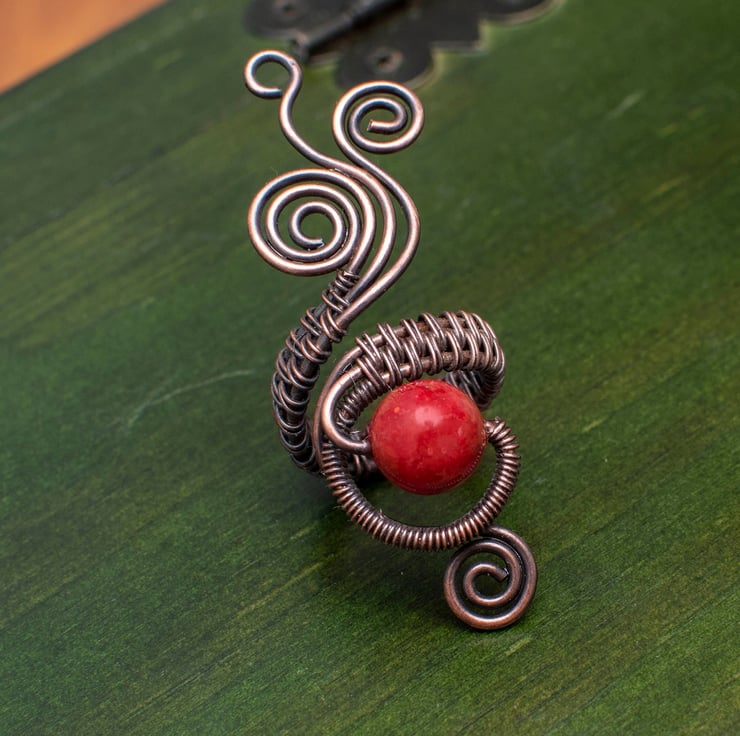 This ring is made of 1.25 mm antique copper wire and wrapped with red agate.