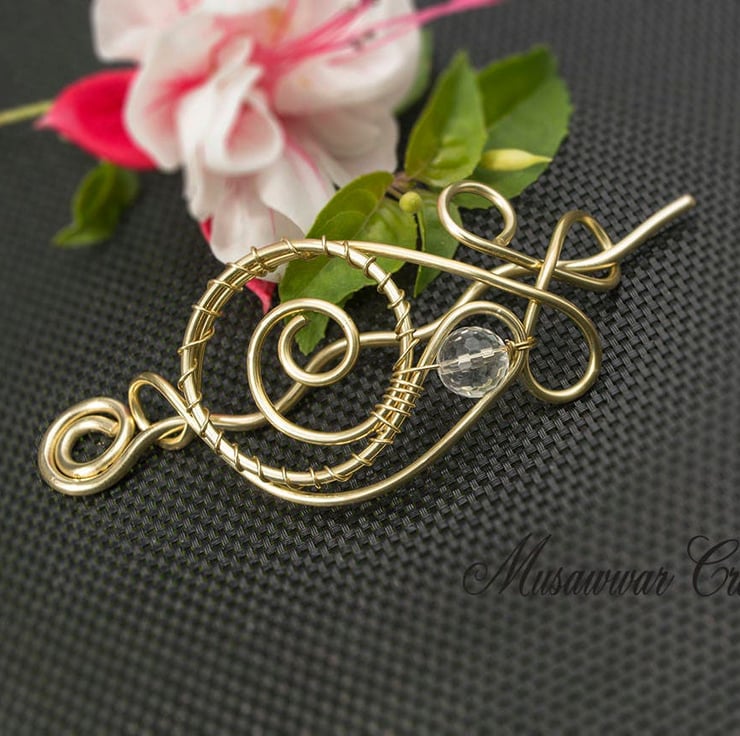 Celtic Brass Hair Clip, brass Bun Holder, Hair barrette brass hair slide,