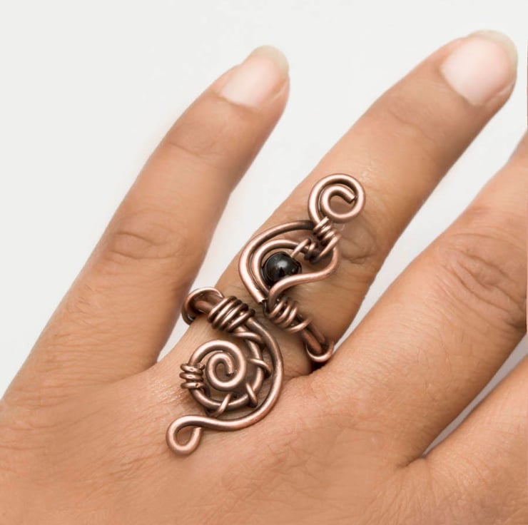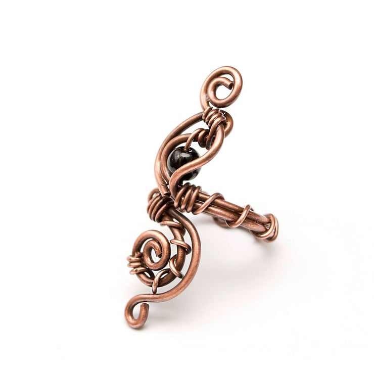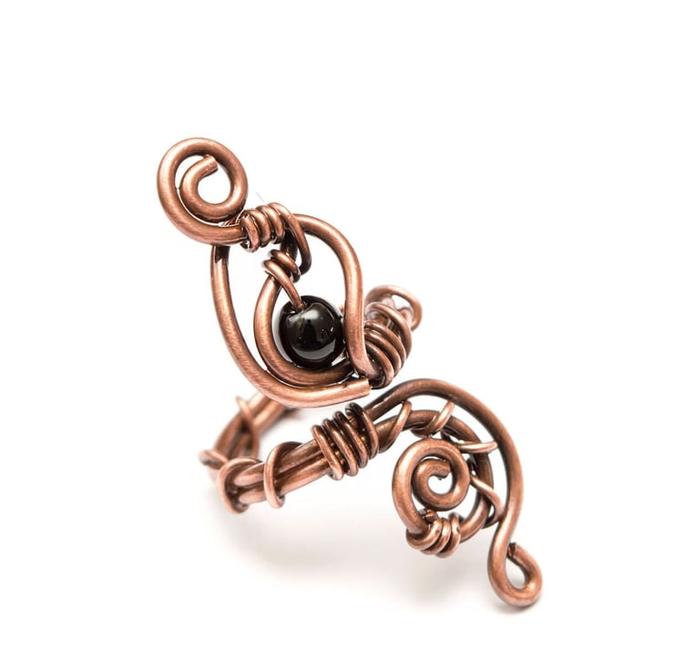 This elegant ring is crafted from solid antique copper wire and features a striking 6mm black agate stone.