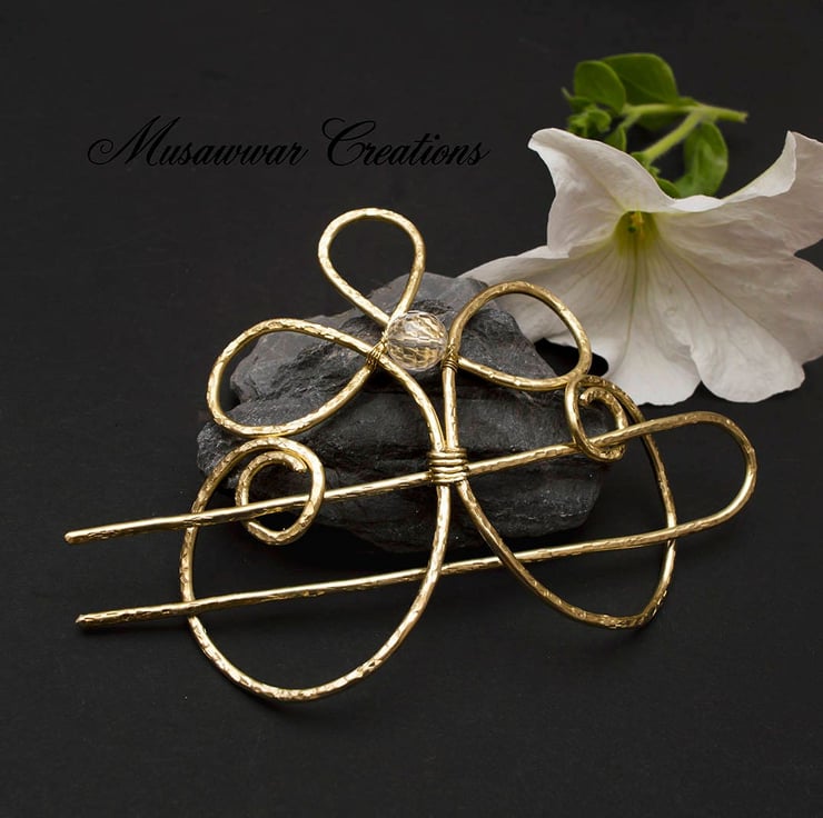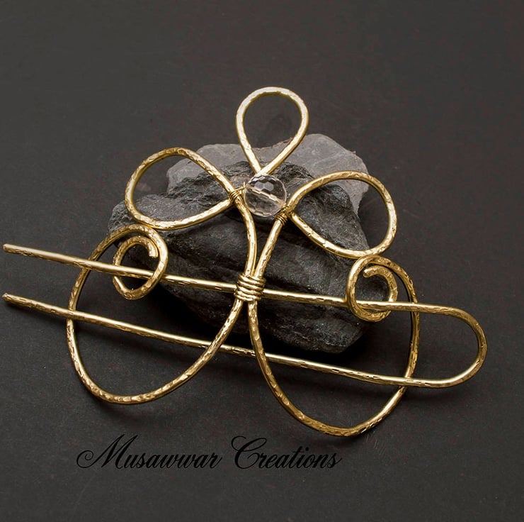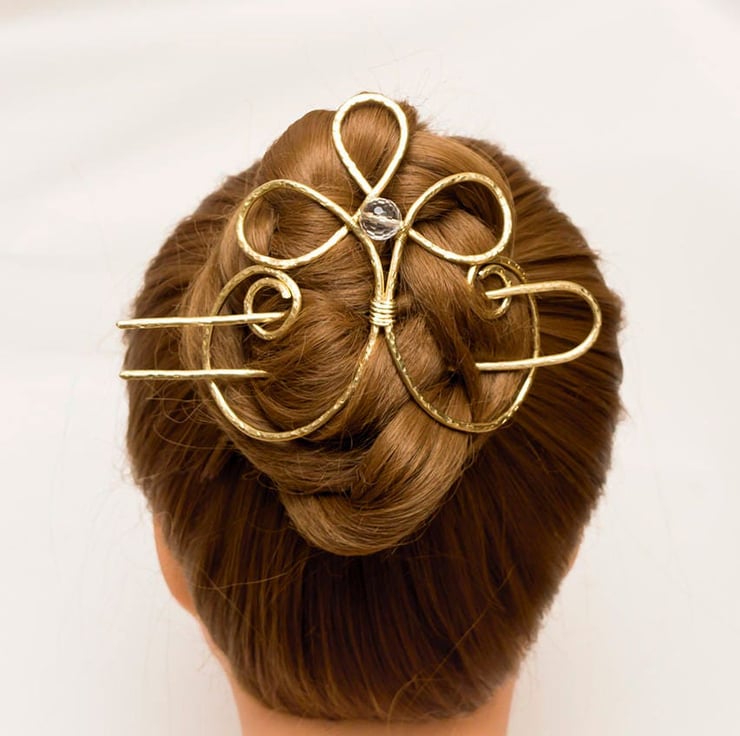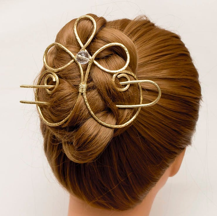 Celtic Spiral brass bun holder ,textured hair bun holder,heavy duty brass wire