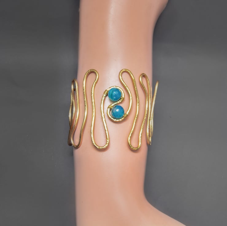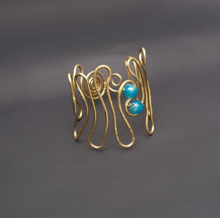 Handcrafted brass Wire Bracelet with blue onyx stones – Boho Chic Cuff Jewellery