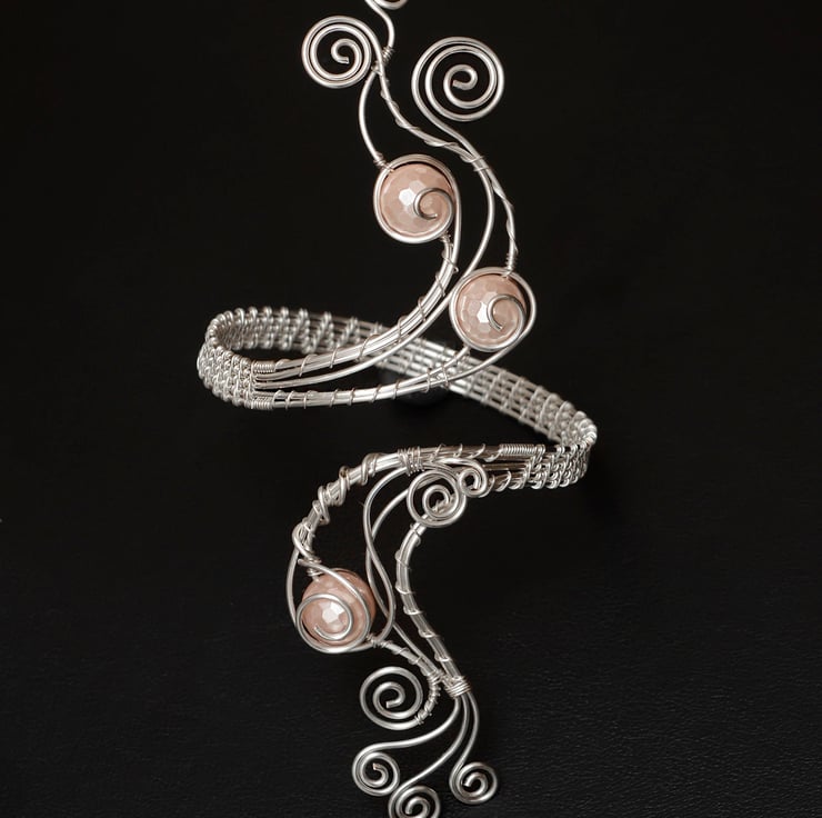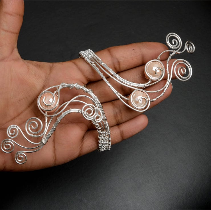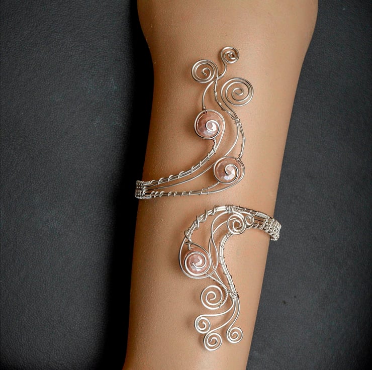The delicate swirl design reflects movement and grace, while the silver-plated wire gives a polished and radiant finish. Lightweight yet sturdy, this arm cuff sits comfortably on the arm and adds a touch of sophistication to any bridal gown, evening dress, or festival outfit,