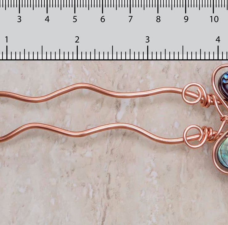 Each hair fork is slightly unique due to the natural variation of abalone shell and the hand-wrapped craftsmanship.