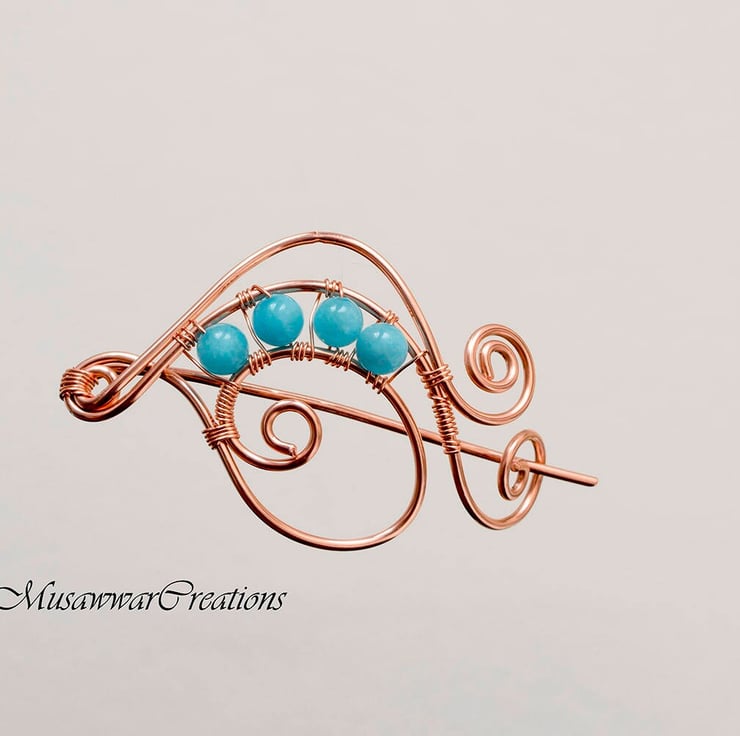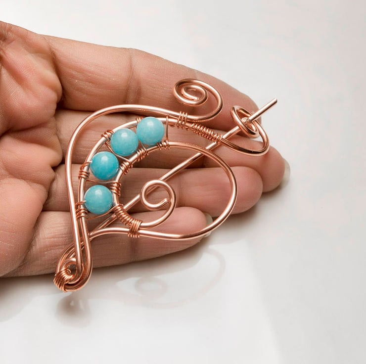 Add a touch of artistry to your favorite shawl or wrap with this swirl-shaped copper wire shawl pin. Handcrafted with care, it is accented with blue quartz stones, bringing both color and natural beauty to your look.