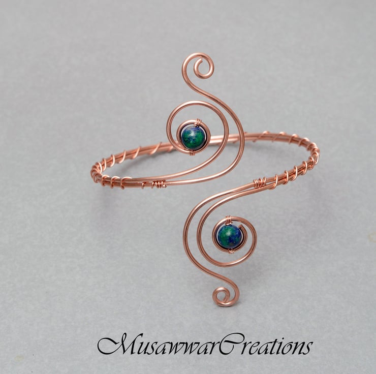 Beautiful and elegant arm cuff is carefully handcrafted made out of pure copper wire.