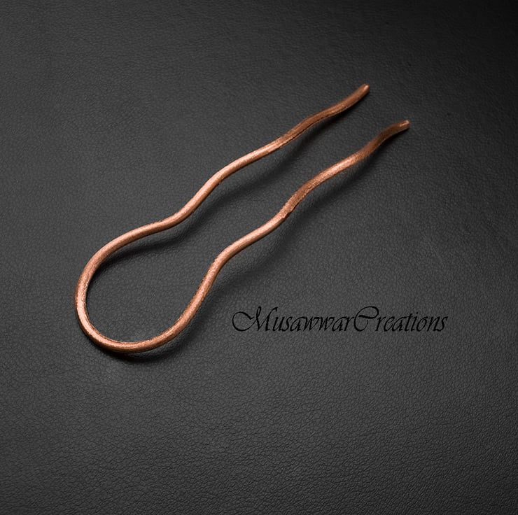 Handmade solid copper hair fork .It is made of heavy duty gauge of copper wire and give the velvet textured on wire.