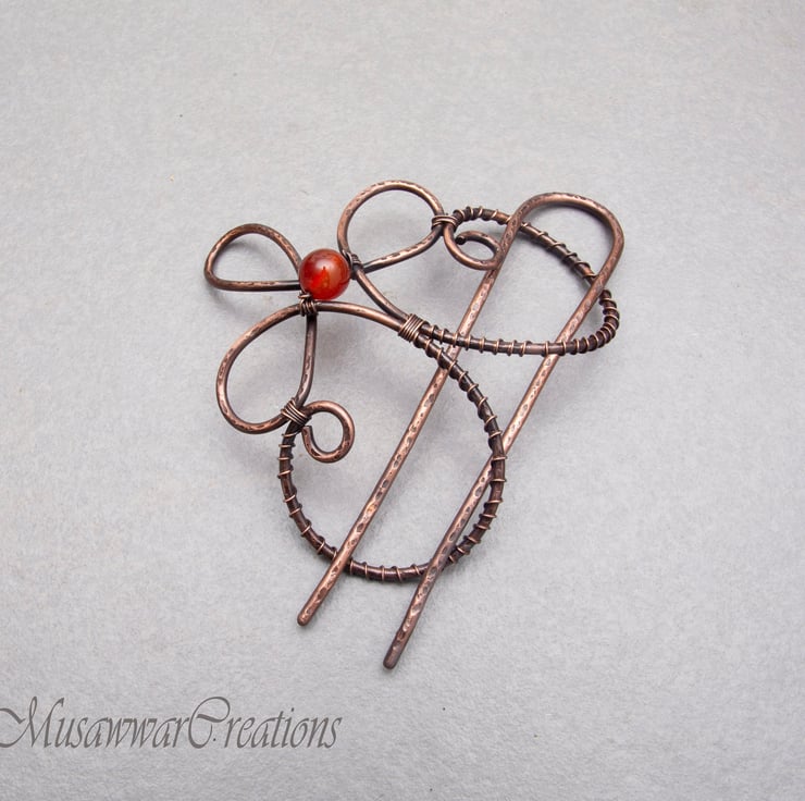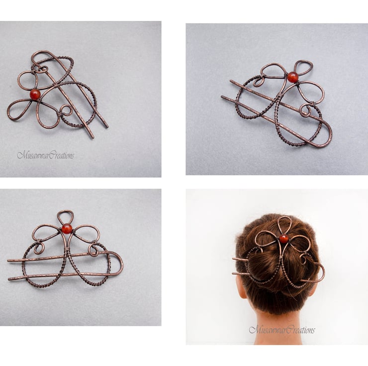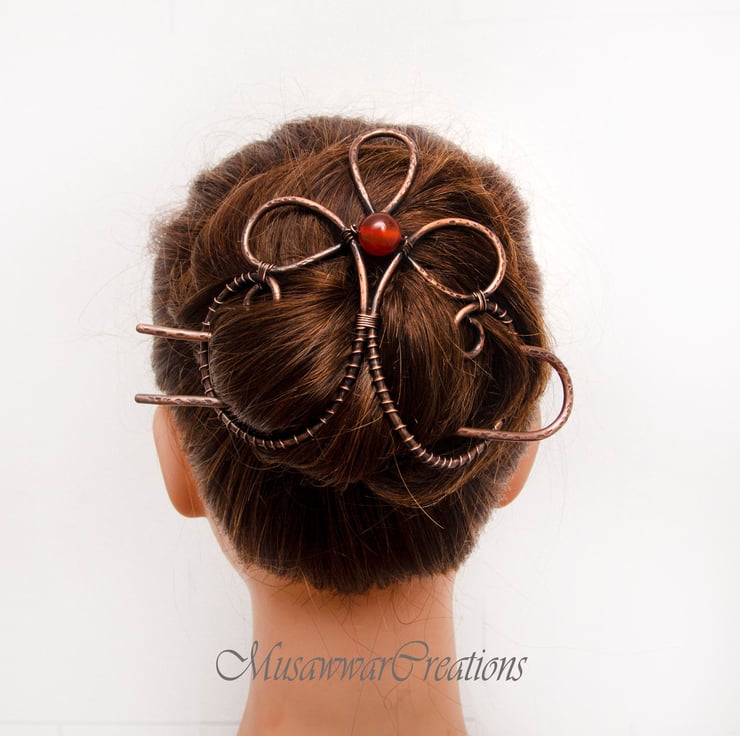 Make your hair look unique and beautifully styled with this handcrafted copper spiral bun holder, designed especially for long or thick hair. Each piece is carefully hammered, textured, and lightly swirled to add strength and maintain its elegant spiral shape.
