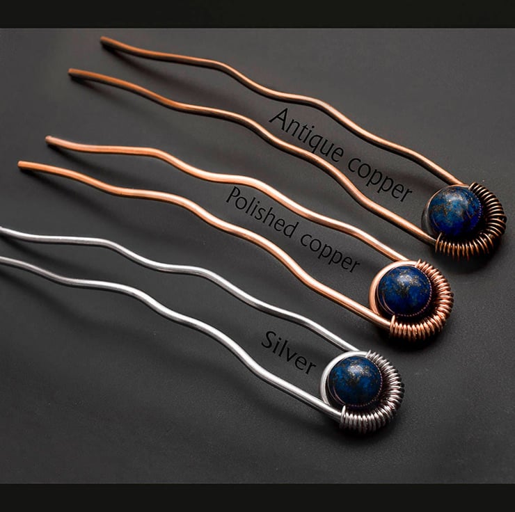 Lapis Lazuli Antique Hair fork ,smooth antique wire hair fork,Copper Hair Stick,