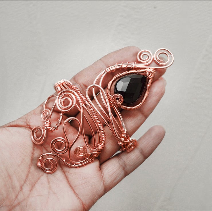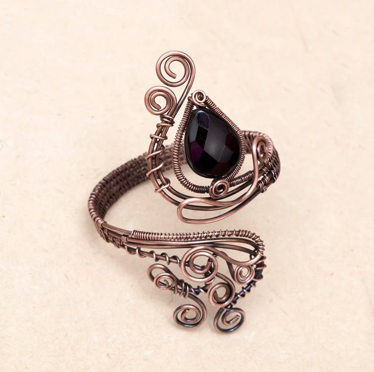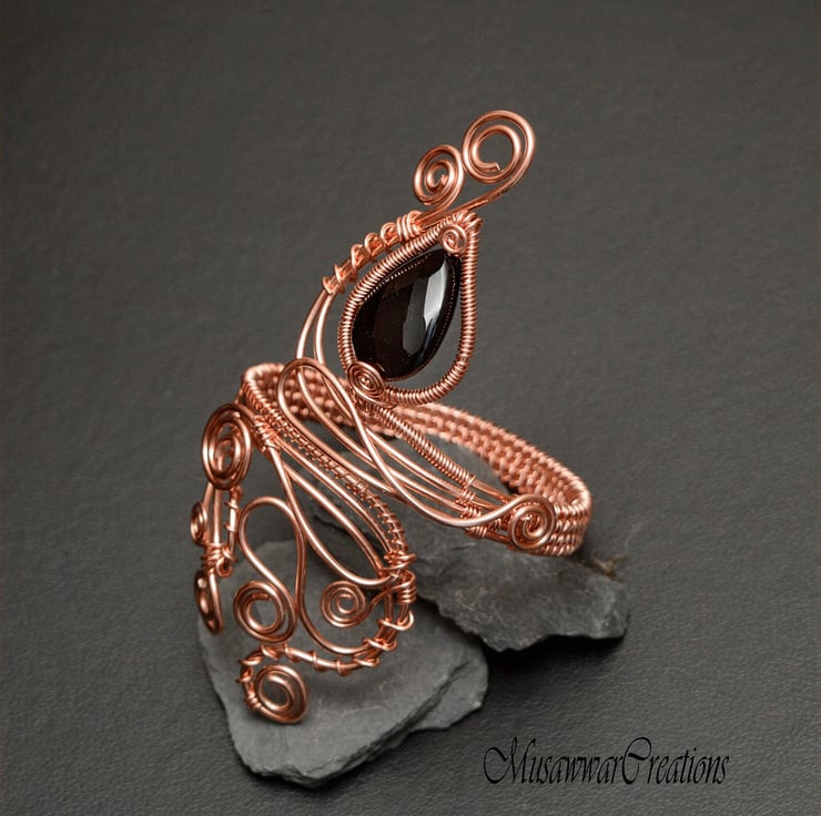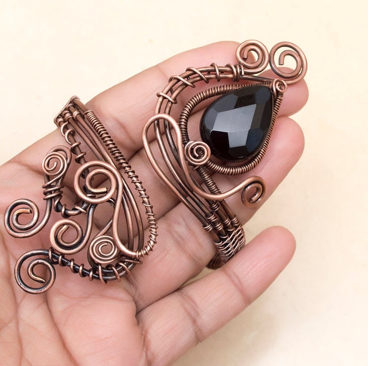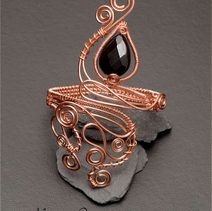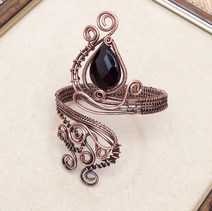 This bracelet is carefully handcrafted made out of thick pure copper wire wrapped with Black Agate Faceted Pear Approx 25X18mm