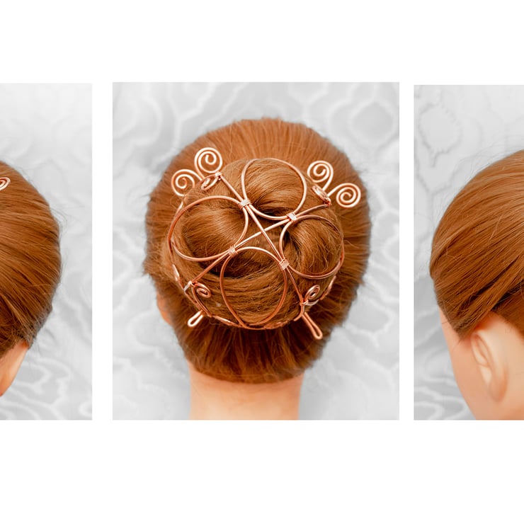 Create a stunning, unique hairstyle with this handcrafted Copper Spiral Bun Cage. Perfect for any occasion, it keeps your hair beautifully styled and securely in place all day long.