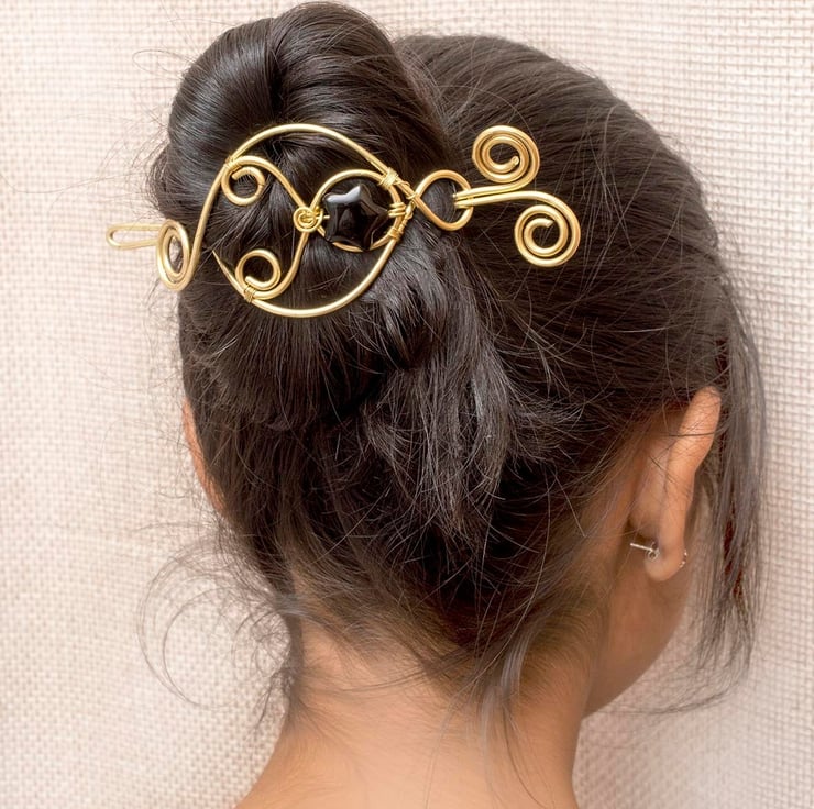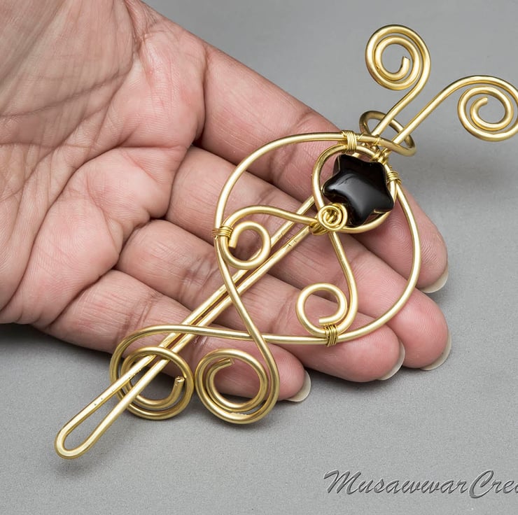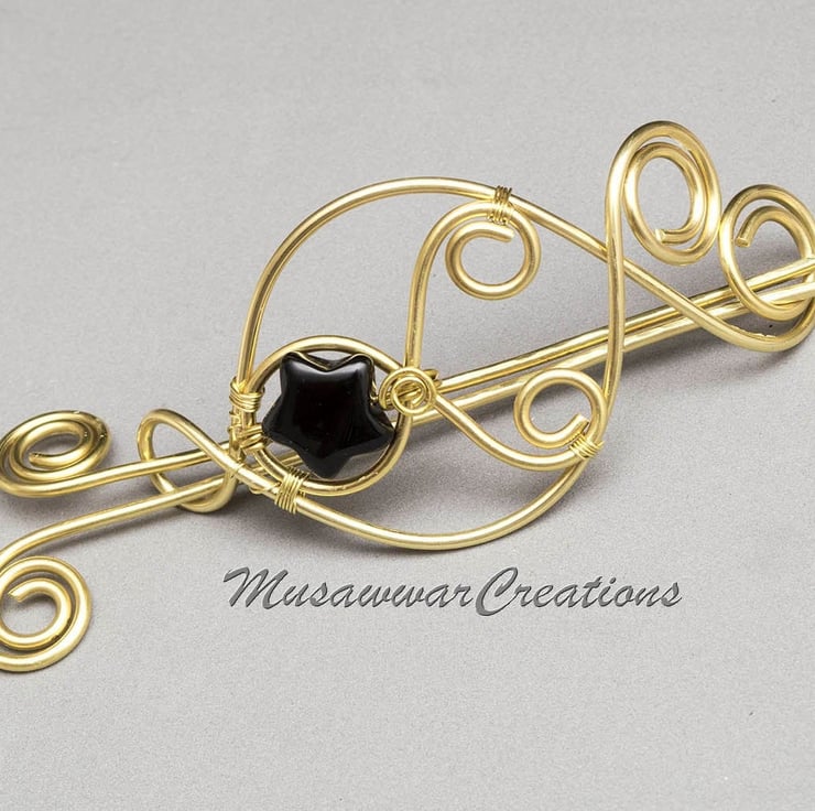 Brass Hair bun holder made of brass wire and wrapped with star shape agate approx 16x16mm.