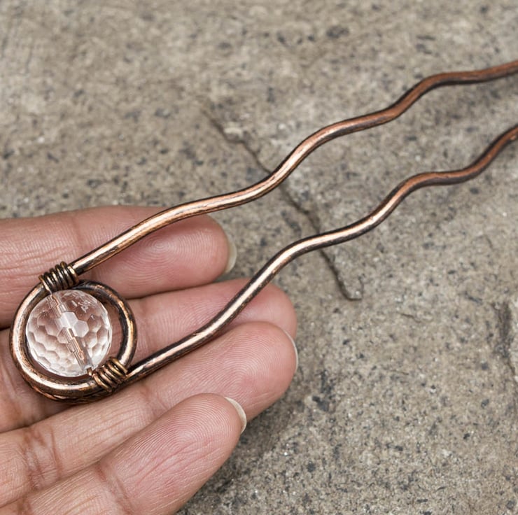 Handmade copper wire forged and hammered for extra strength .