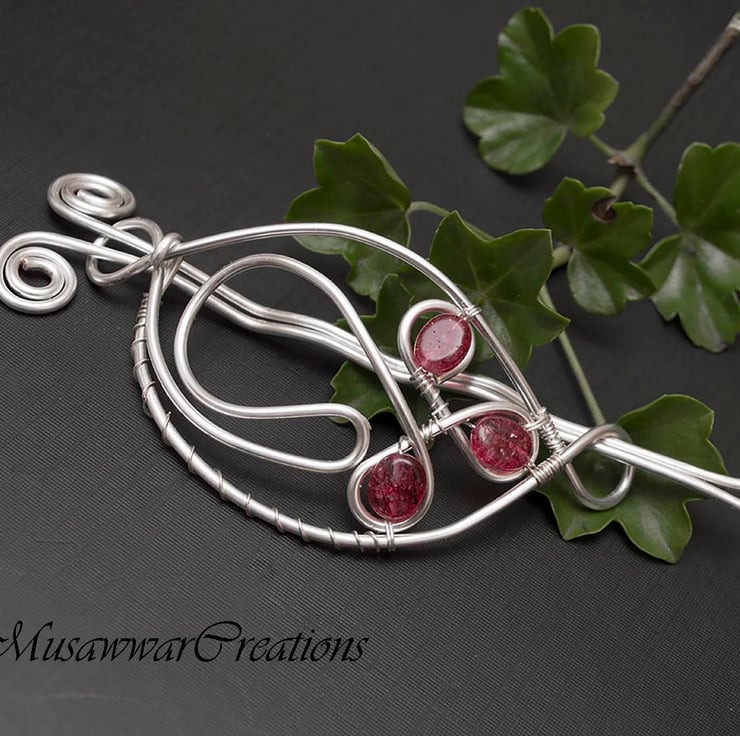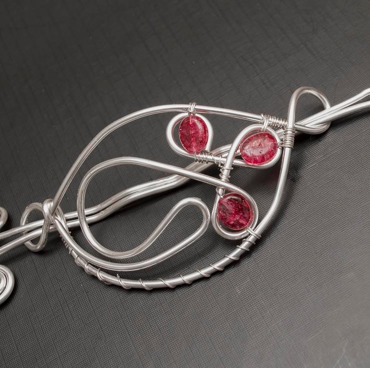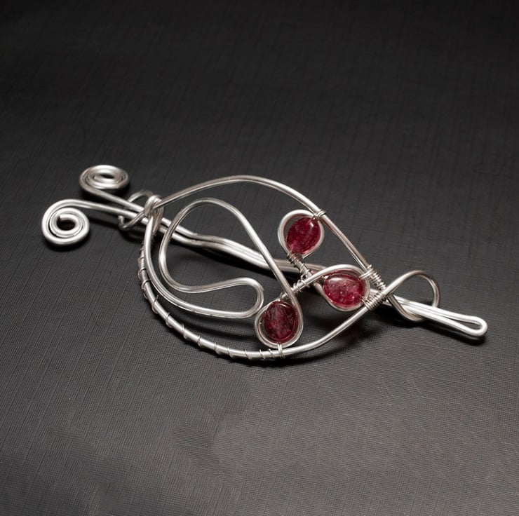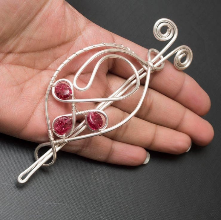 Silver wire wrapped red crackled Hair slide,hair bun holder ,Hair brooch,silver