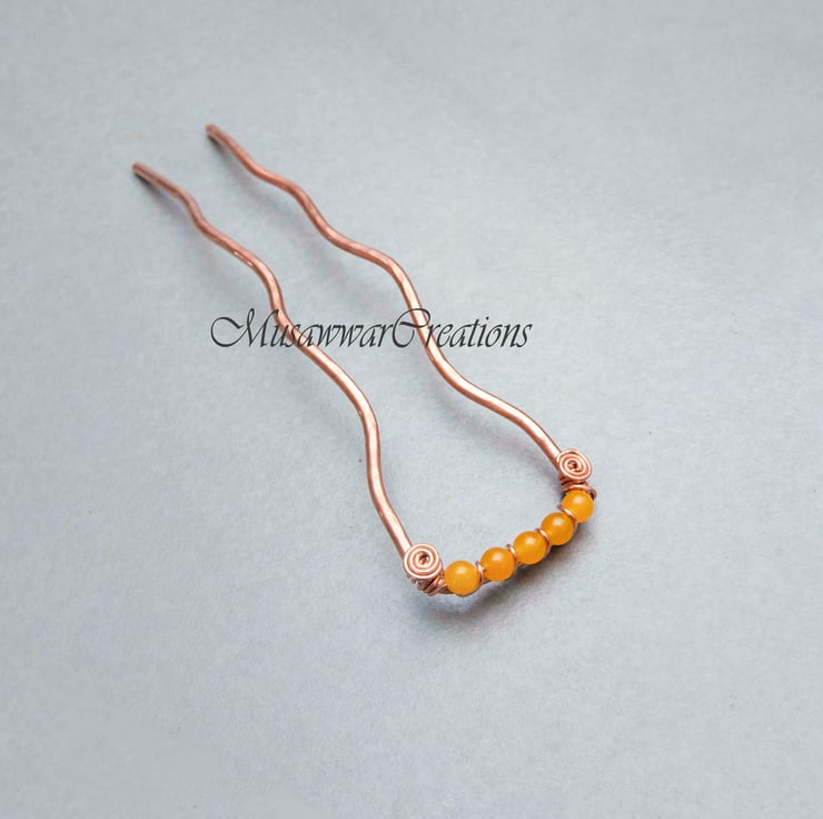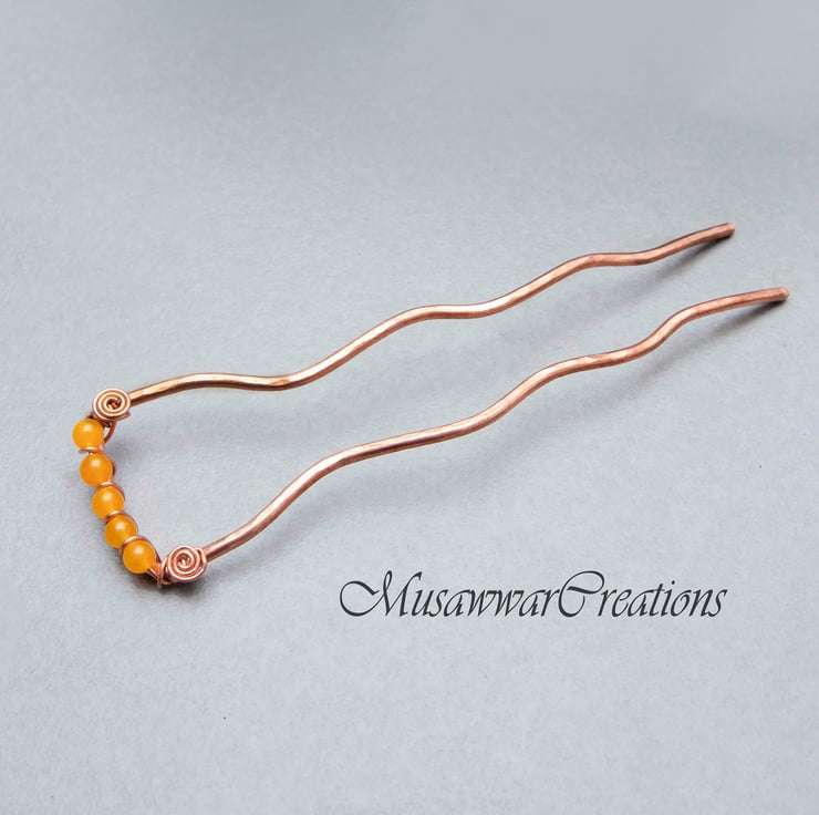 Fancy copper hair bun fork is handmade in UK. Give your hair do some bright lovely details.