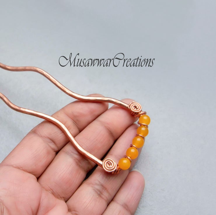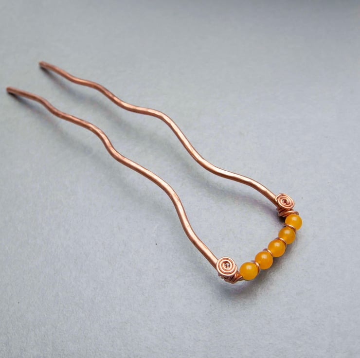 Fancy copper hair bun fork is handmade in UK. Give your hair do some bright lovely details.