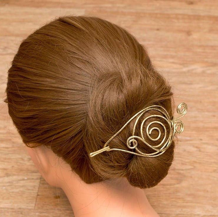 Perfect for brides, bridesmaids, or anyone who loves a timeless hair accessory, this brass spiral bun holder complements any hairstyle — from classic buns to modern updos.