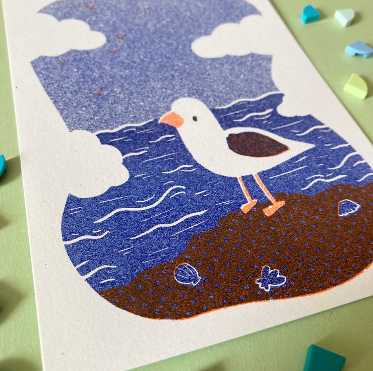 Risograph printing is a duplication process similar to screen printing, every duplicate that is created will be unique in its own way. It is created with a soy based ink that has a very charming and hand printed look. Each print will be signed and this run is limited to 50 of each design. The texture of the prints is beautiful and I have tried to show it as much as possible ini the photographs but it is much better in real life.