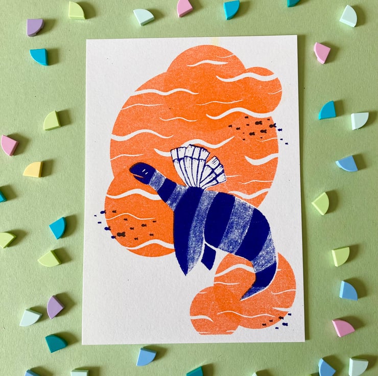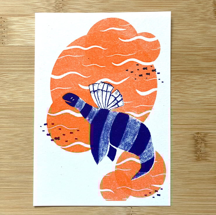 Risograph printing is a duplication process similar to screen printing, every duplicate that is created will be unique in its own way. It is created with a soy based ink that has a very charming and hand printed look. Each print will be signed and this run is limited to 50 of each design. The texture of the prints is beautiful and I have tried to show it as much as possible ini the photographs but it is much better in real life.