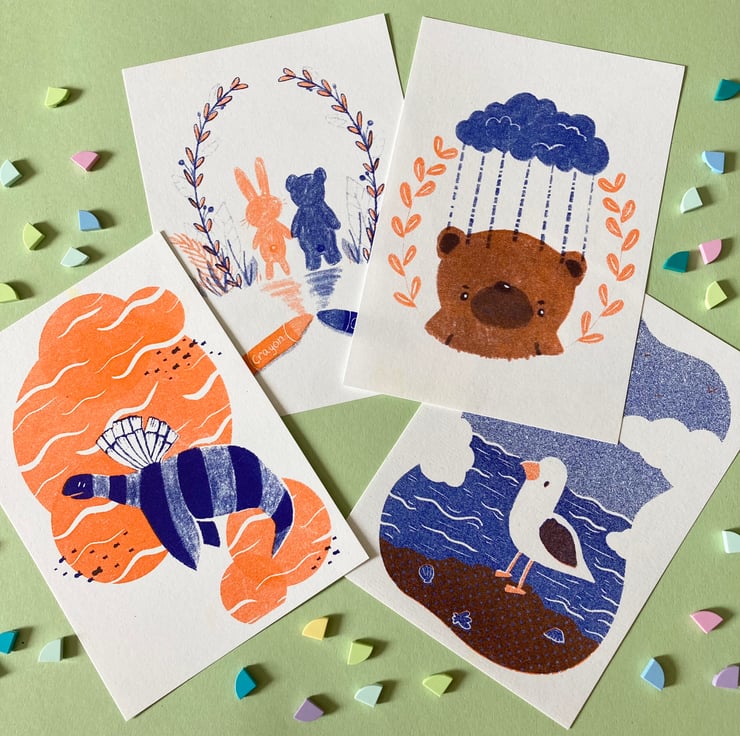 I really love the texture of risograph printing and wanted to apply that to some of my illustrations. I really hope that people love them as much as I do.