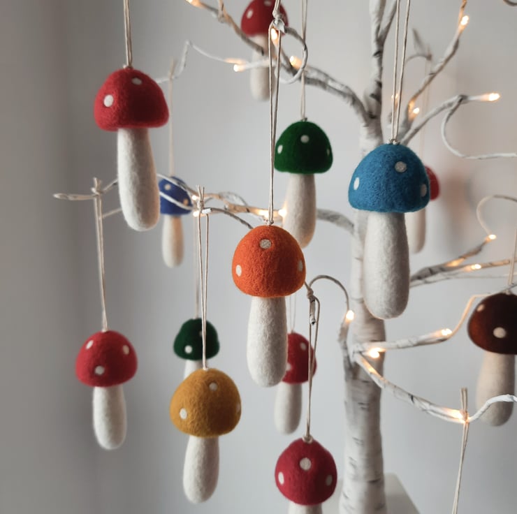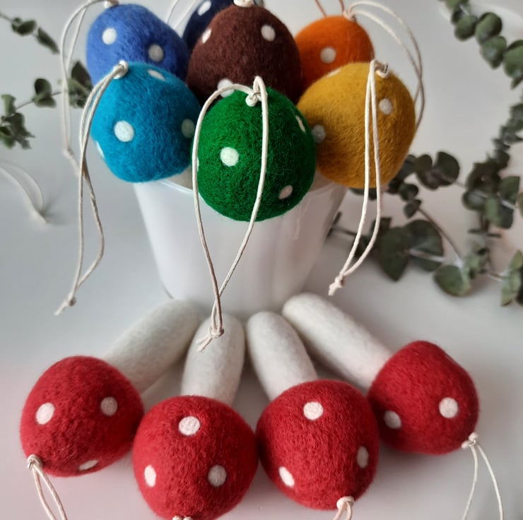 Every set contains the traditional red top, with a random colourful topped toadstool for a playful touch to your decorations.