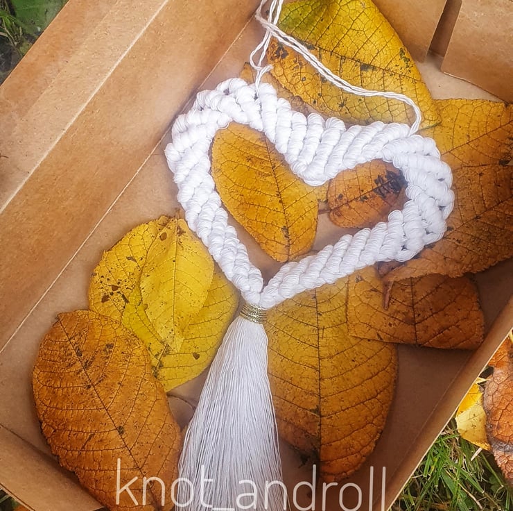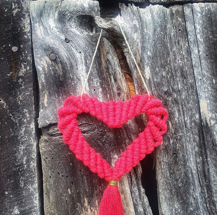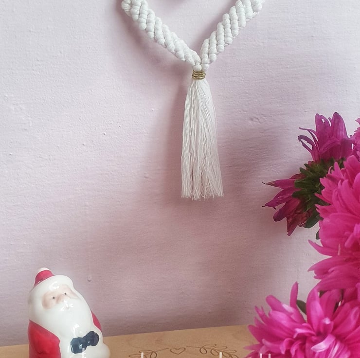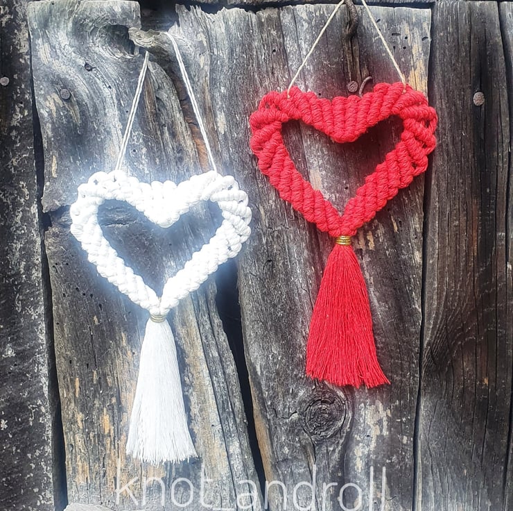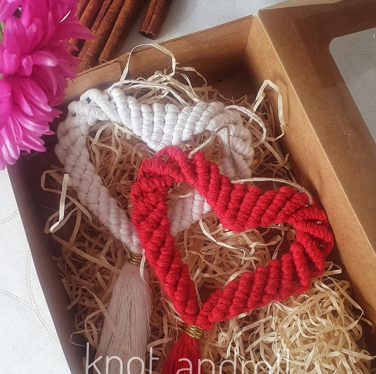 Lovely macrame heart, single piece, perfect as a Christmas tree decoration or wall decor.