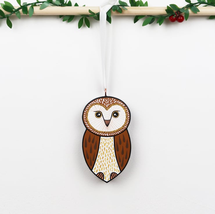 Barn Owl Christmas tree ornament.