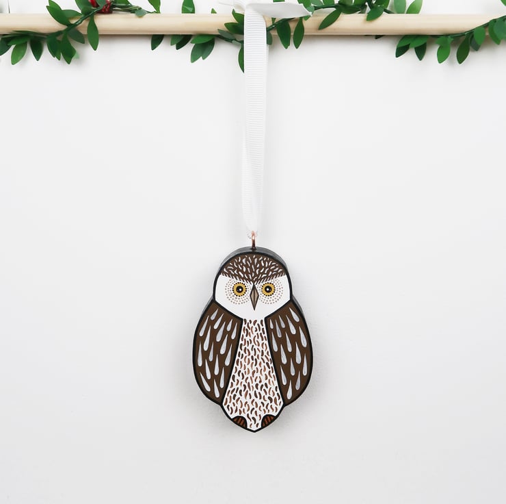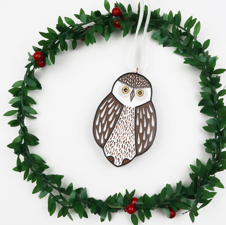 Little owl hanging Christmas tree ornament, cute stocking filler