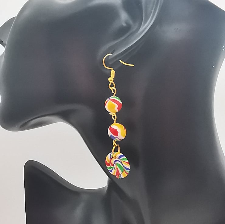 Polymer clay is a lightweight substance making these joyous earrings comfortable to wear any time, any place.