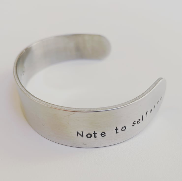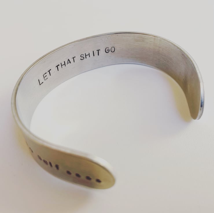 Aluminium cuff bangle bracelet hand stamped with ‘note to self….let that shit go’
