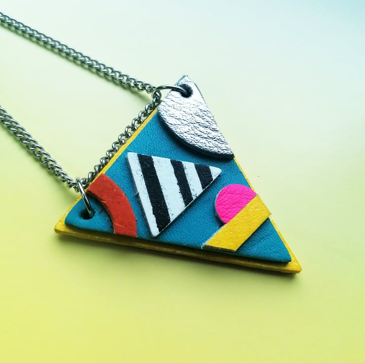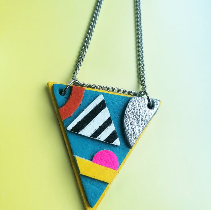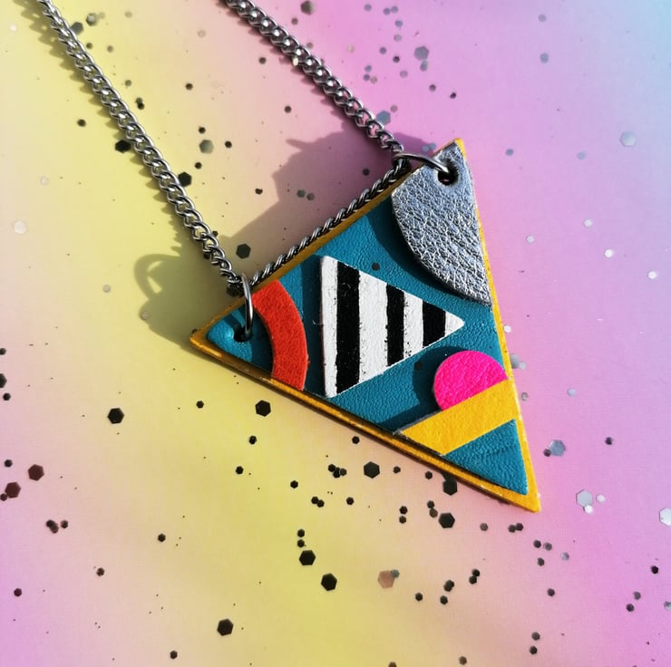 In my work I use leather offcuts collected from the fashion industry. The pieces are surplus and often destined for landfill. Minimising waste is very important to me, so I have delved into my scrap bucket (offcuts of offcuts!!!) to create this necklace range. Playing with colour and form, each necklace is unique and will not be re created.