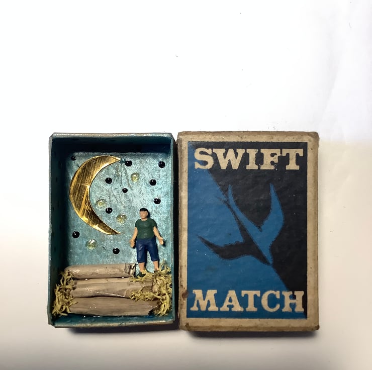 This tiny like matchbox has been altered to contain a man saying: ‘what the hell is going on?’