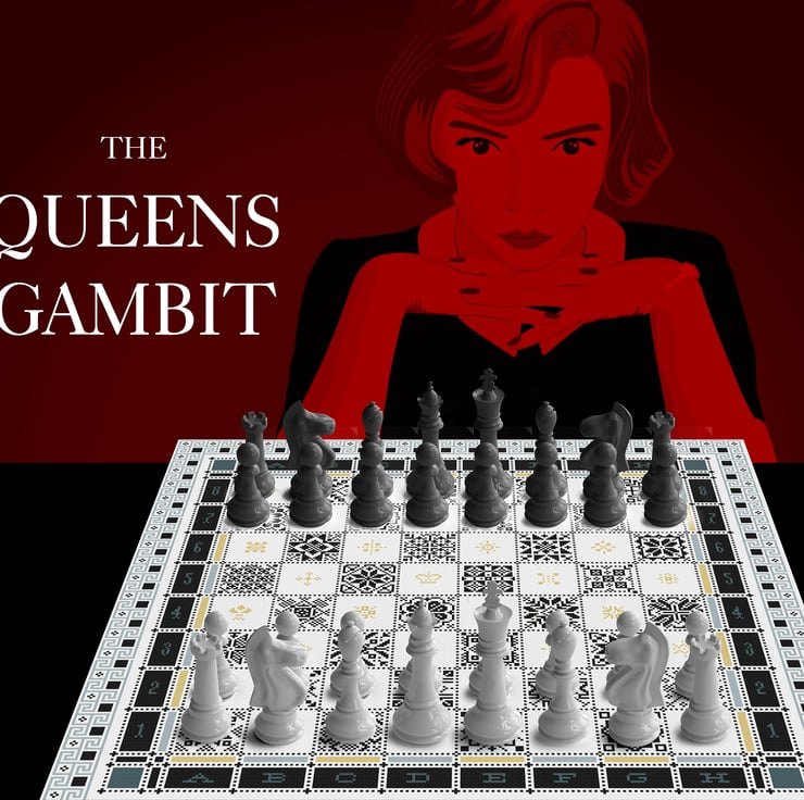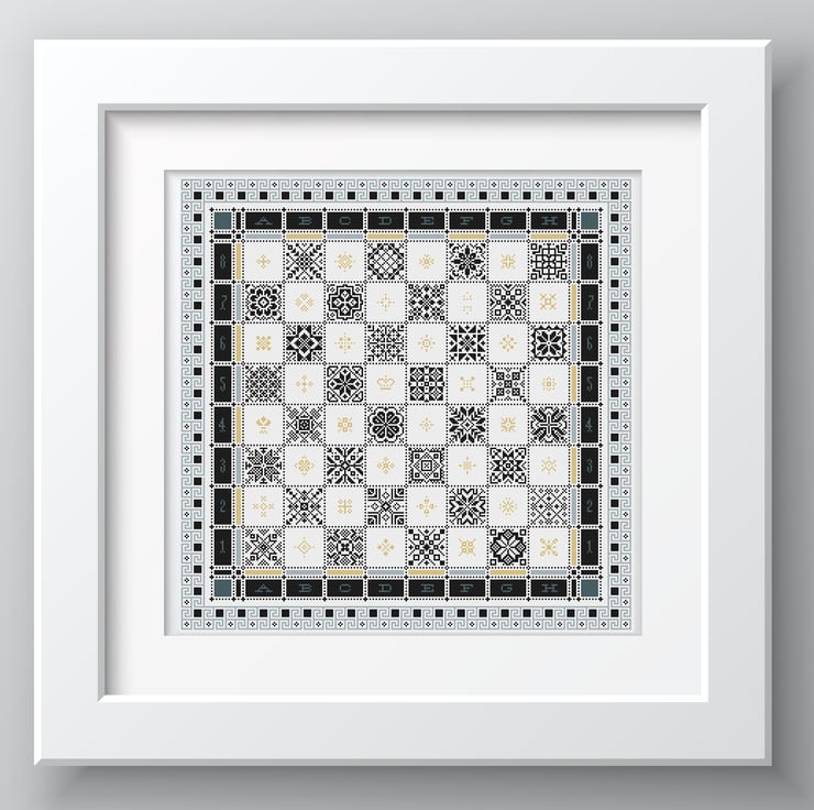 In homage to the brilliant Netflix series the Queen's Gambit and based on the book of the same name by Walter Tevis with numbers and letters down the sides to give it the true sampler feel. The game pieces not included.