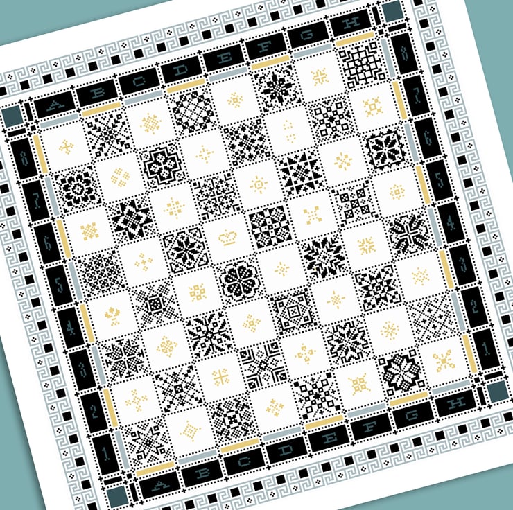 Cross Stitch chart - The Queen's Gambit - Full Chess Board Tiles Quaker Sampler - Geometric Squares - by Vivsters - PDF counted chart 221
