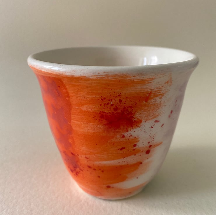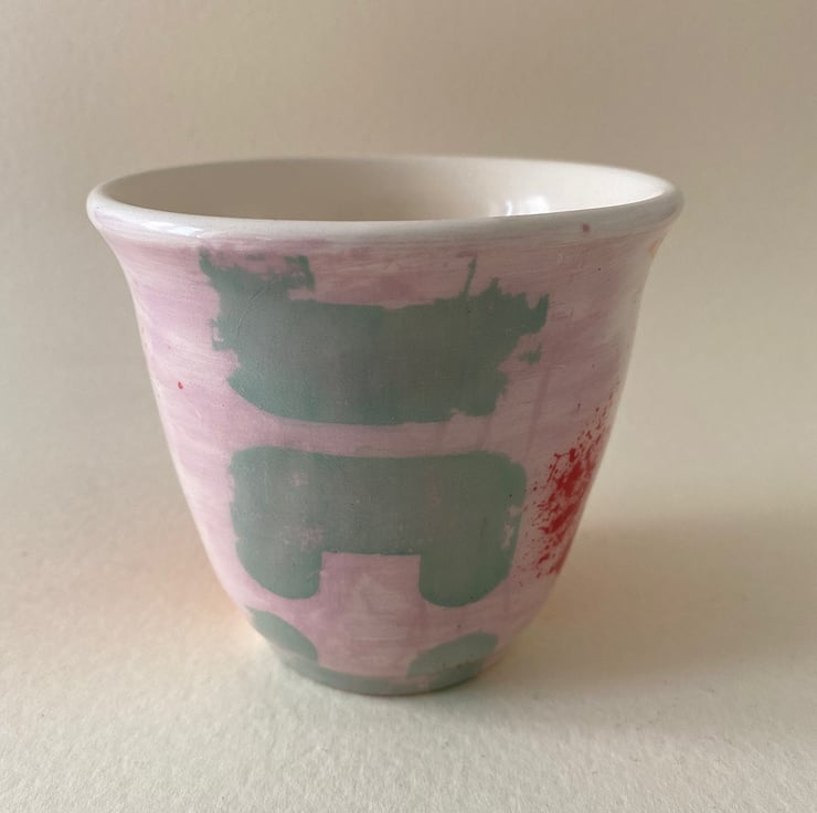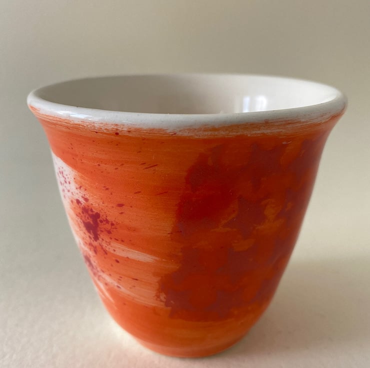 A variety of colours and patterns travel around the cup.