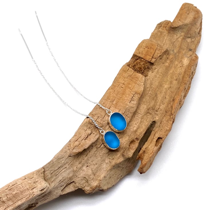I have made the sterling silver setting by hand and hung them on sterling silver threader earrings.