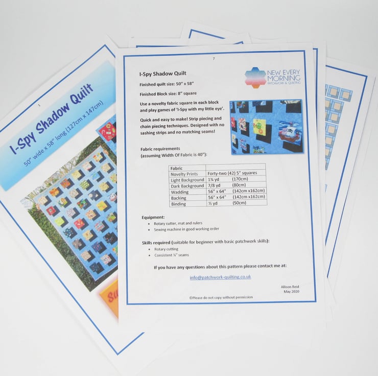 (I have included a photograph of an I-Spy Shadow Quilt made using this pattern. Please note this listing is for a printed pattern only!)