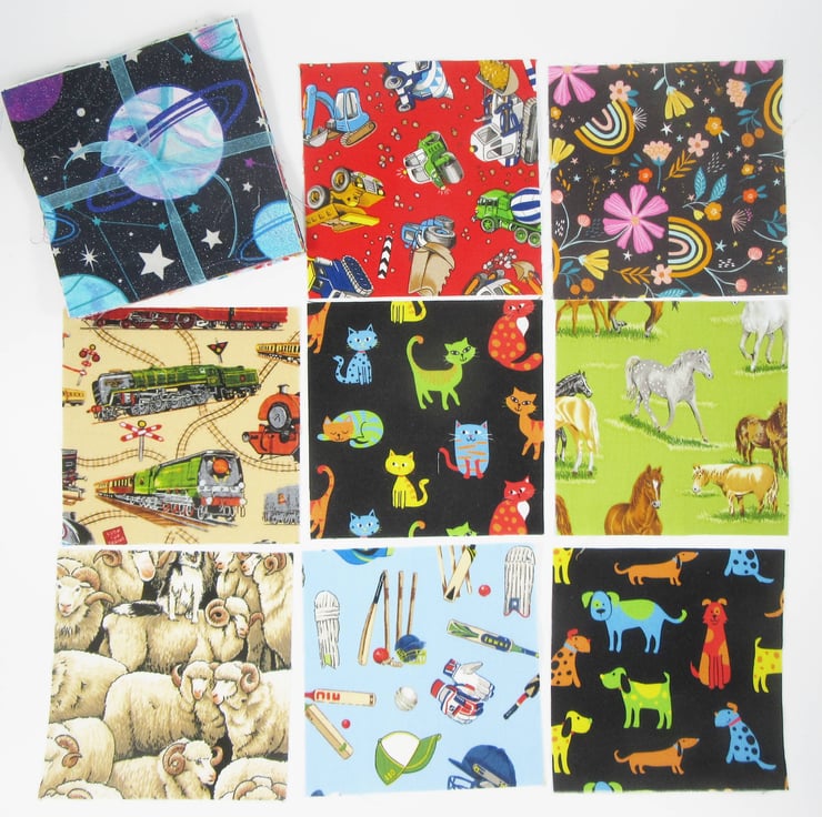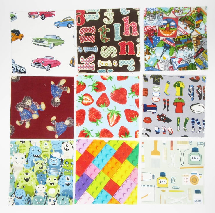 I really enjoy making and gifting I-Spy quilts. But finding a variety of good quality cotton novelty print fabrics can take some time so I thought I'd make it easy for anyone else looking to make a quilt by collating these ready to use packs.