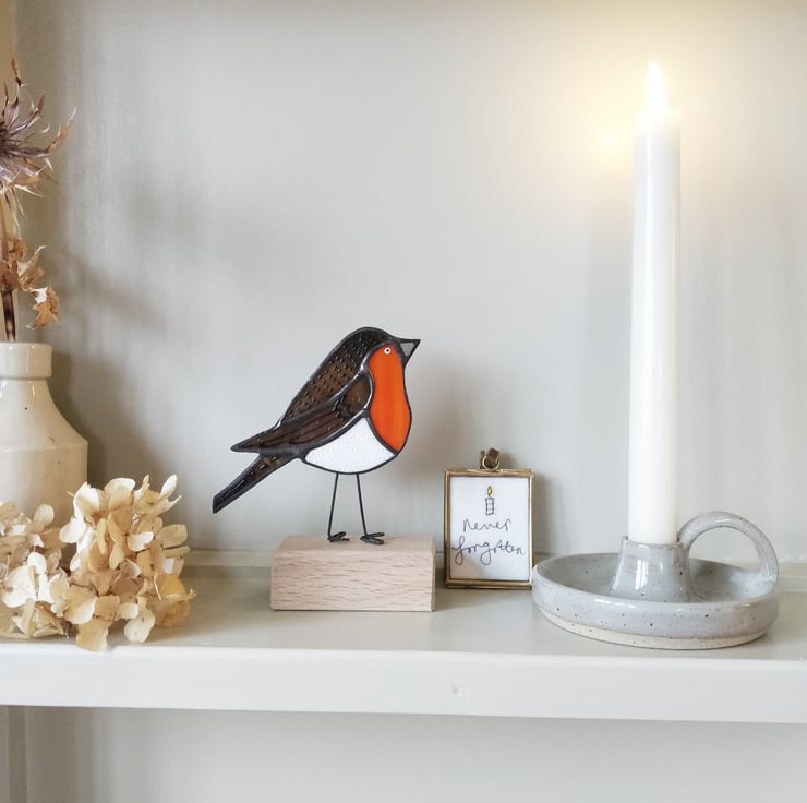 Beautifully illustrated and handcrafted in stained glass this little suncatcher would make a gorgeous, fun addition to any home. Whether displayed on your favourite shelf or shinning bright in front of your window. This little bird is a great way to introduce some colour and create a more contemporary, curated space within your home.