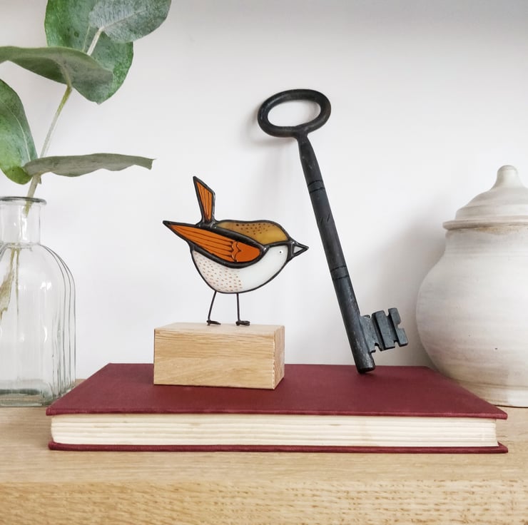 Beautifully illustrated and handcrafted in stained glass this little suncatcher would make a gorgeous, fun addition to any home. Whether displayed on your favourite shelf or shinning bright in front of your window. This little bird is a great way to introduce some colour and create a more contemporary, curated space within your home.