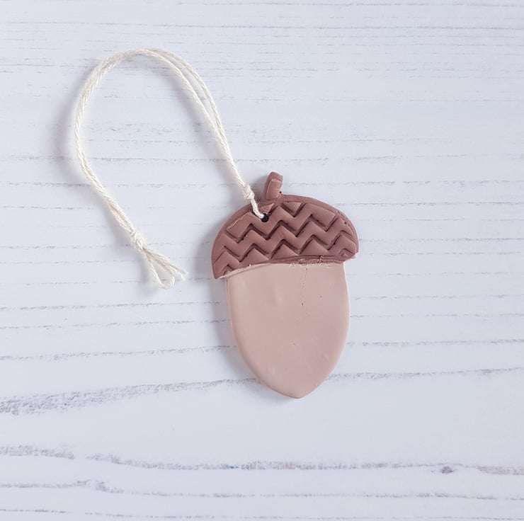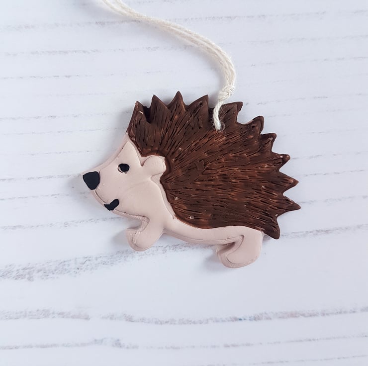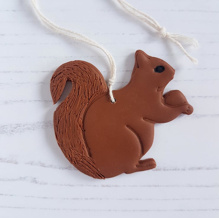 Choose from a selection of woodland themed hanging decorations, including a cute squirrel, hedgehog or acorn! Made from polymer clay with detail added using acrylic paint.