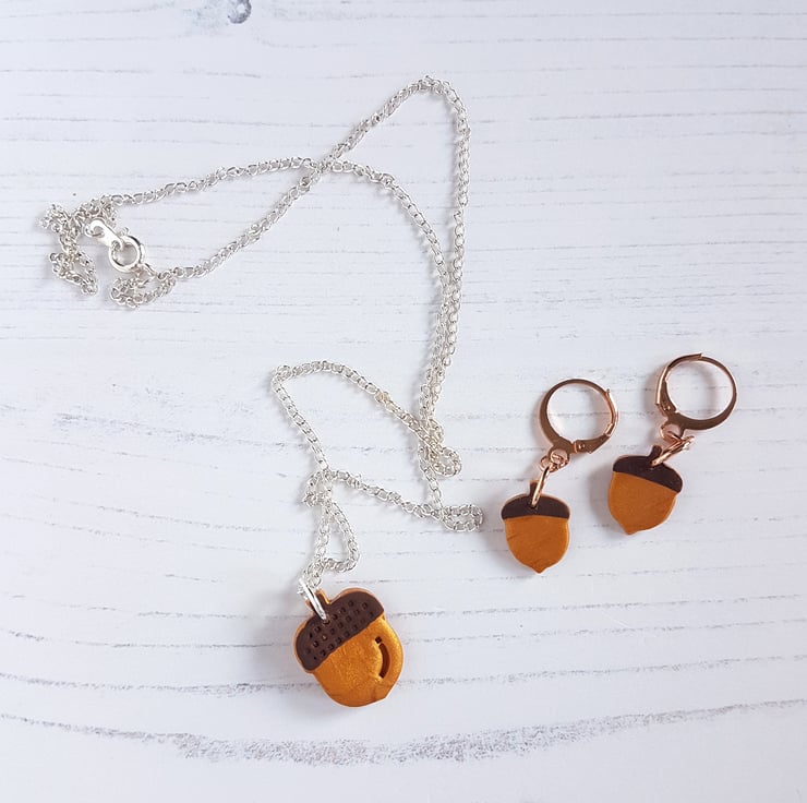 Necklace lengths are either 18 inches or 20 inch. One acorn pendant on necklace supplied for the price (photo is to show earrings are also available)