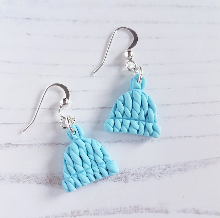 These mini winter knitted hat earrings have been carefully hand crafted using polymer clay, hand 'knitted' to create the knit effect. Shaped into the style of a bobble hat, these are just too cute!