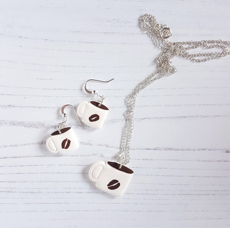 Winter hot drink mug earrings and necklaces - choose your style, colour