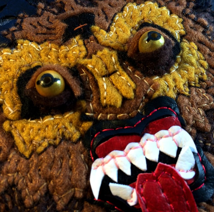 He has disco beads for eyes which means in certain lighting they give an effect of glowing in a way or reflecting light in a mesmerising way. This whole piece is completely hand sewn and based upon one of my original lino prints which I have hand painted, also available elsewhere in the shop! Do please have a look around if Dark Christmas Folklore is your thing!