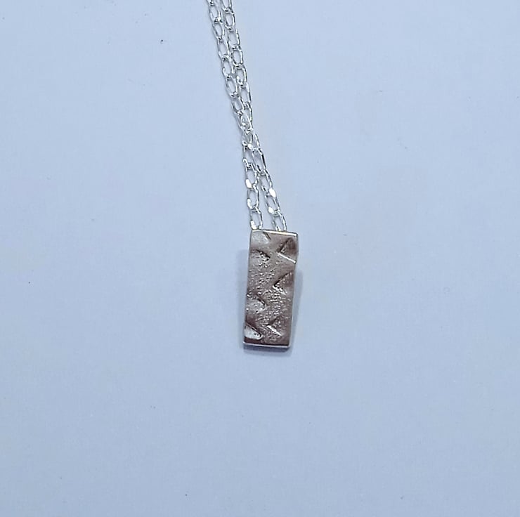 I have created this elegant necklace by hand texturing a section of sterling silver with an attractive slightly reticulated abstract pattern.