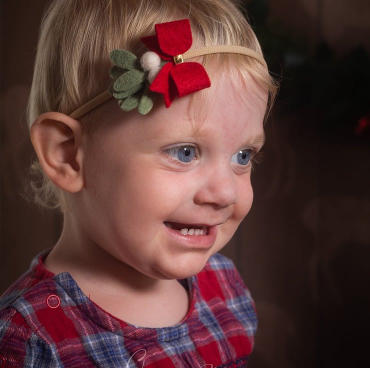A gorgeous set of three Christmas baby headbands featuring holly, a poinsettia and mistletoe on soft nylon headbands. Will fit newborn up to adult. Ideal Christmas set or gift set as they will match any festive outfit!